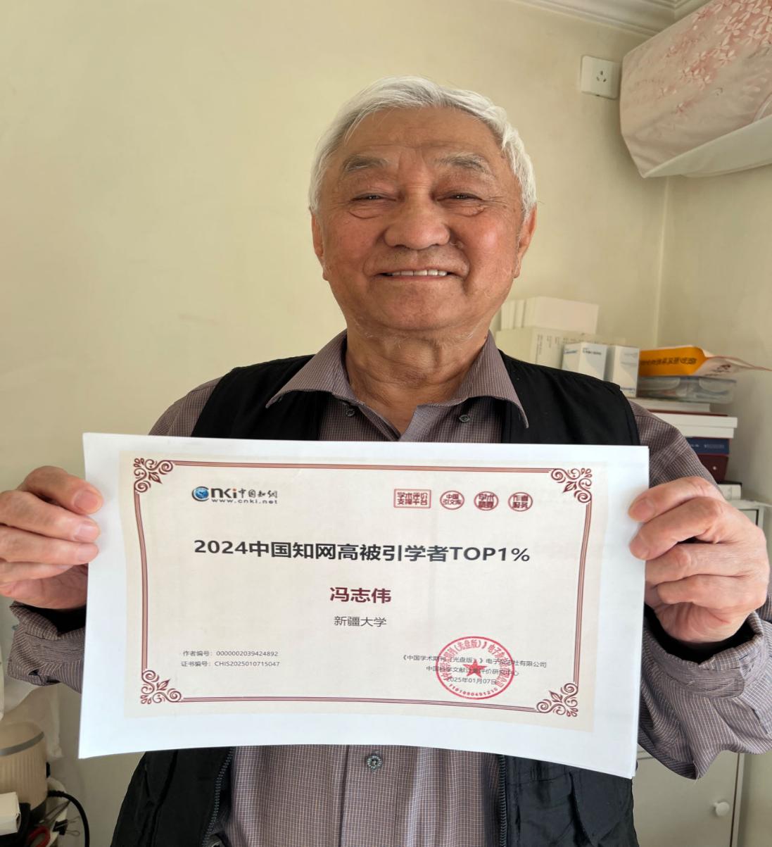 天山学者冯志伟教授入选“2024年中国知网被引学者TOP1%”榜单。
