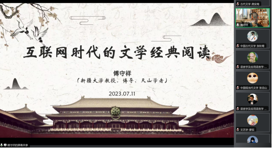 学术研究是特色基础上的融合,是田野调查、深描和细描的结合。接着,傅守祥教授所做的题为《互联网时代的文学经典阅读》,指出为什么要阅读经典作品,即要做一个独立思考善于明辨的人,通过搭建大框架,建立据点以及借助通读、系统研读、重读的方式来阅读经典。并结合学生实际提出三条路径:多读书尤先读经典、勤能补拙和虚心求教。傅教授的讲座从内涵、原因和路径等各方面,详细解读了文学经典阅读的科学方法,也拓宽了文学研究的视野。
